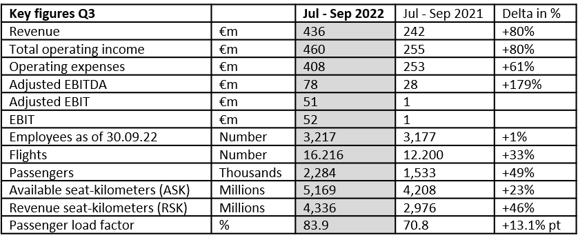 Brussels Airlines chiude il suo terzo trimestre 2022 a 51 milioni di euro, il risultato trimestrale più alto dei suoi 20 anni di storia. Inoltre, la compagnia aerea rimborserà anticipatamente il prestito statale, entro la fine di quest’anno. La compagnia di bandiera belga ha accolto quasi il 50% di passeggeri in più rispetto allo stesso periodo del 2021. Guardando al futuro, Brussels Airlines punta a una crescita forte e redditizia espandendo la sua flotta, assumendo nuovi dipendenti in tutti i suoi reparti e continuando a collaborare positivamente con i suoi social partner.