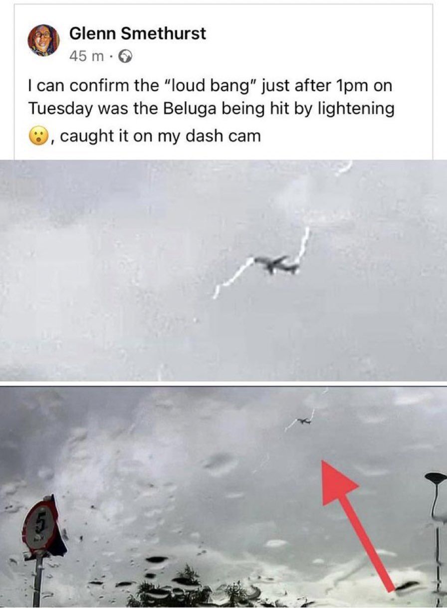Martedì il fulmine ha colpito Beluga XL5 ed è spettacolare grazie a una dash cam!