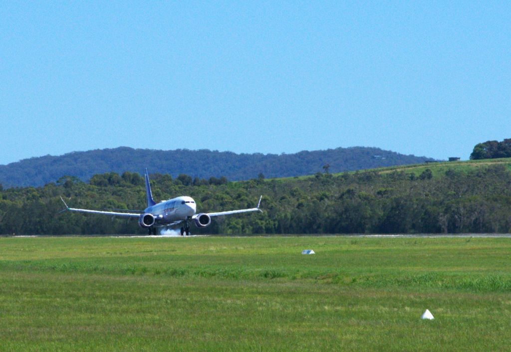 Questa bellezza viola si unisce alla nostra crescente flotta di Boeing 737-MAX 8, incluso il nostro primo aereo Shazza e il recente arrivo Bazza, che è atterrato al Sunshine Coast Airport la scorsa settimana”.