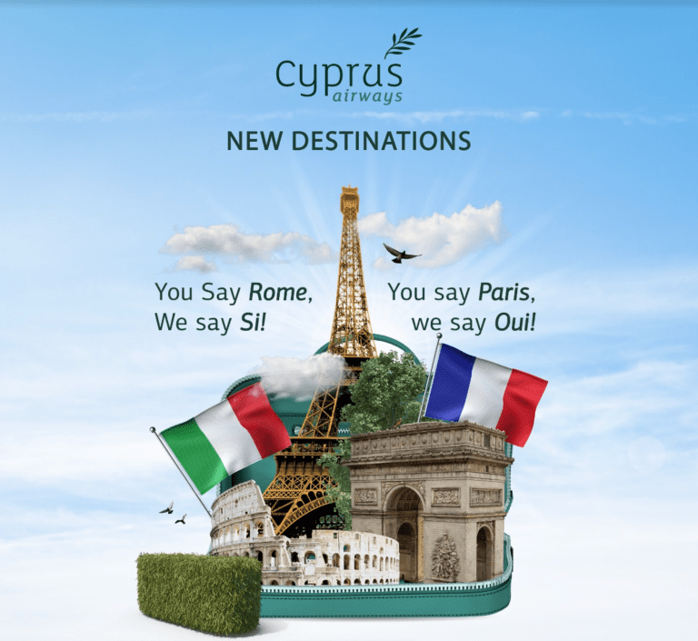 Cyprus Airways ha annunciato che inizierà a operare voli di linea e tutto l’anno per il Charles De Gaulle di Parigi a partire dal 16 dicembre 2022 con un’operazione tre volte alla settimana e per l’aeroporto di Roma Fiumicino con un servizio due volte alla settimana a partire dal 20 dicembre. 2022.