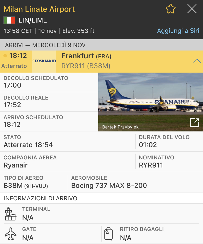 Non e’ stato un bug, alle 18:54 di ieri e’ arrivato un aereo Ryanair a Milano Linate da Francoforte. Il volo era privato operato per necessità del vettore e ha parcheggiato nell’area adibita ai velivoli business aviation.