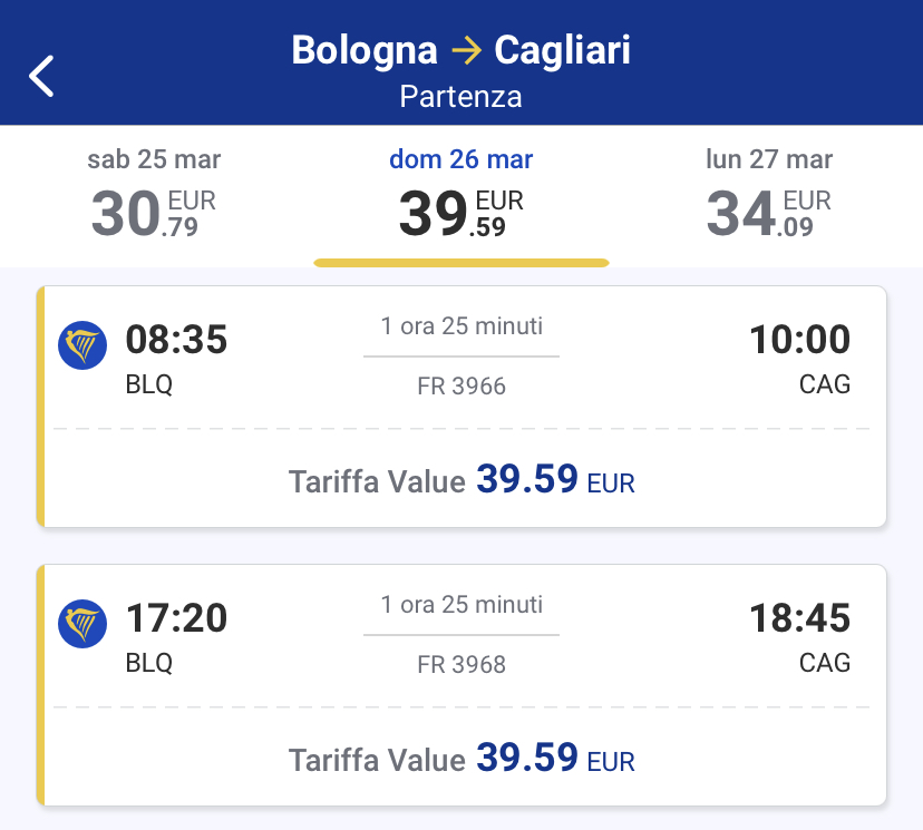 Ieri i voli erano apparsi ma non erano prenotabili. Un esempio e’ il collegamento tra Bologna e Cagliari incrementato a due voli giornalieri.