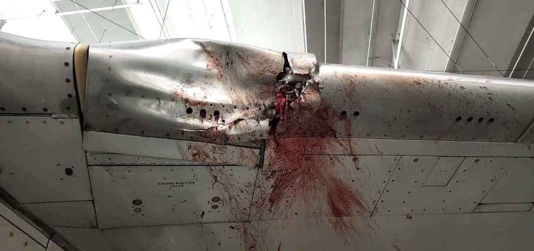 I danni sono visibile alla parte anteriore destra con danneggiamenti pesanti al radome e la parte di fusoliera successiva alla zona del radar. Poi a un bordo di attacco di una semiala e all’engine nacelle destra.