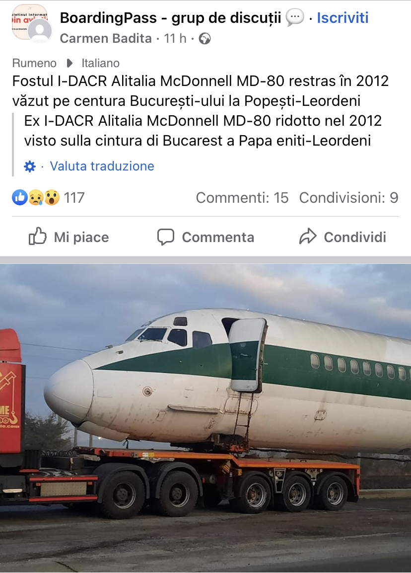 L’aereo con la matricola I-DACR era a Bucarest dal 2012.