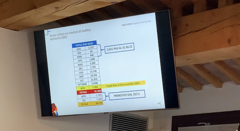 In 10 mesi sono stati 73768, a fine 2022 si stimano 90mila circa. Il target dichiarato era almeno 50001 passeggeri. Un passeggero in più di 50mila come dice Andrea Gilardi – marketing, aviation, communications director di F.A. S.r.l. – quelli che servono per mantenere la concessione”. Il traguardo quindi e’ stato ampiamente raggiunto.