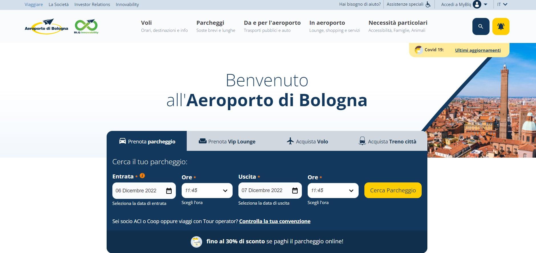 fondamentali come la ricerca Voli o l’accesso alla prenotazione di parcheggi o ingressi in