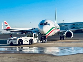 Le immagini di ASC Handling mostrano l’aereo all’arrivo (sopra) e al momento della partenza (sotto).