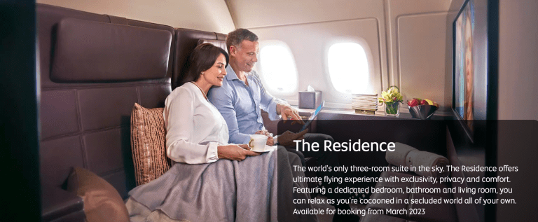 I nove First Apartments, disposti su un unico corridoio, offrono uno spazio abitativo privato con una grande poltrona in pelle e un pouf che si apre per diventare un letto completamente piatto separato lungo 80,5 pollici. Il First Apartment è uno dei più spaziosi della sua categoria e offre anche un monitor TV LCD orientabile da 24 pollici e un mobile lavabo personale. Per la prima volta, Etihad prevede di offrire The Residence come extra opzionale per gli ospiti per migliorare ulteriormente la loro prima esperienza.