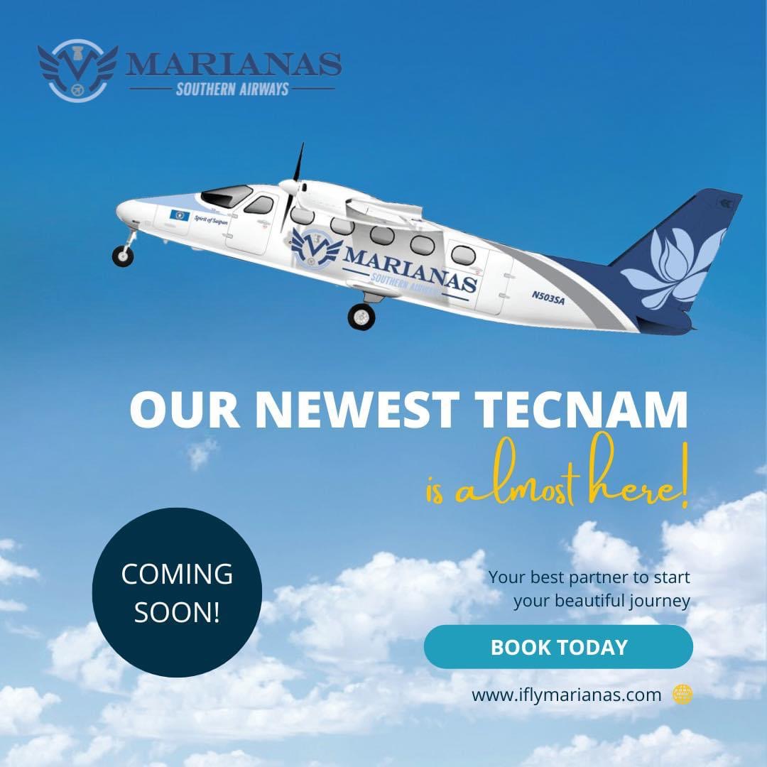 Nei prossimi giorni anche l’altro Tecnam P.2012 Traveler della Marianas Southern Airways arriverà alle Isole Marianne. La compagnia aerea lo annuncia con questa locandina pubblicata su i social.