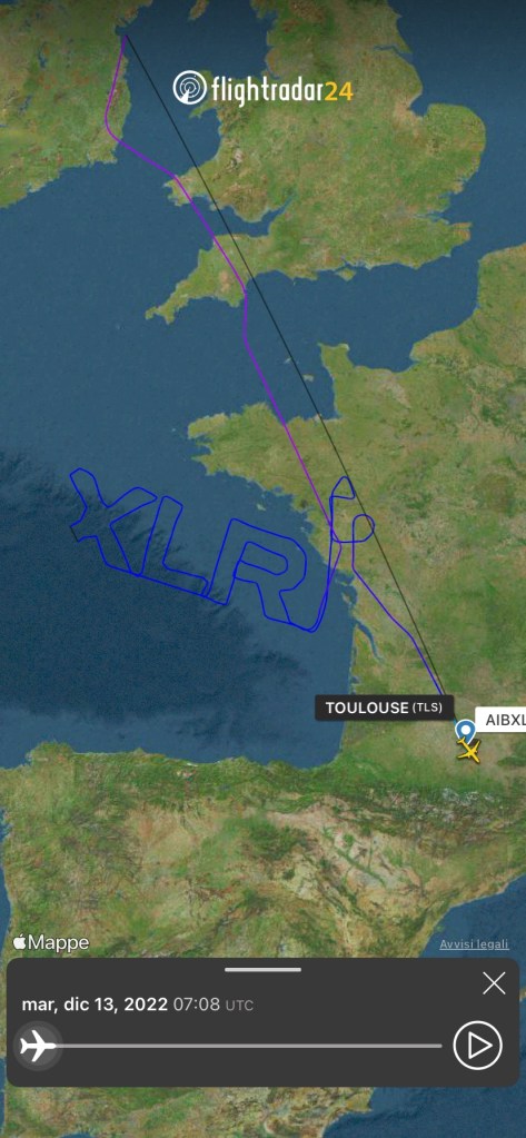 Per chi ne ha voglia guardate che cosa sta facendo l’A321XLR decollato poco dopo le 8 da Tolosa e ancora e’ in volo a sei ore di distanza e ancora lo sarà trattandosi che sta sulla Irlanda e dovrà tornare a Tolosa.