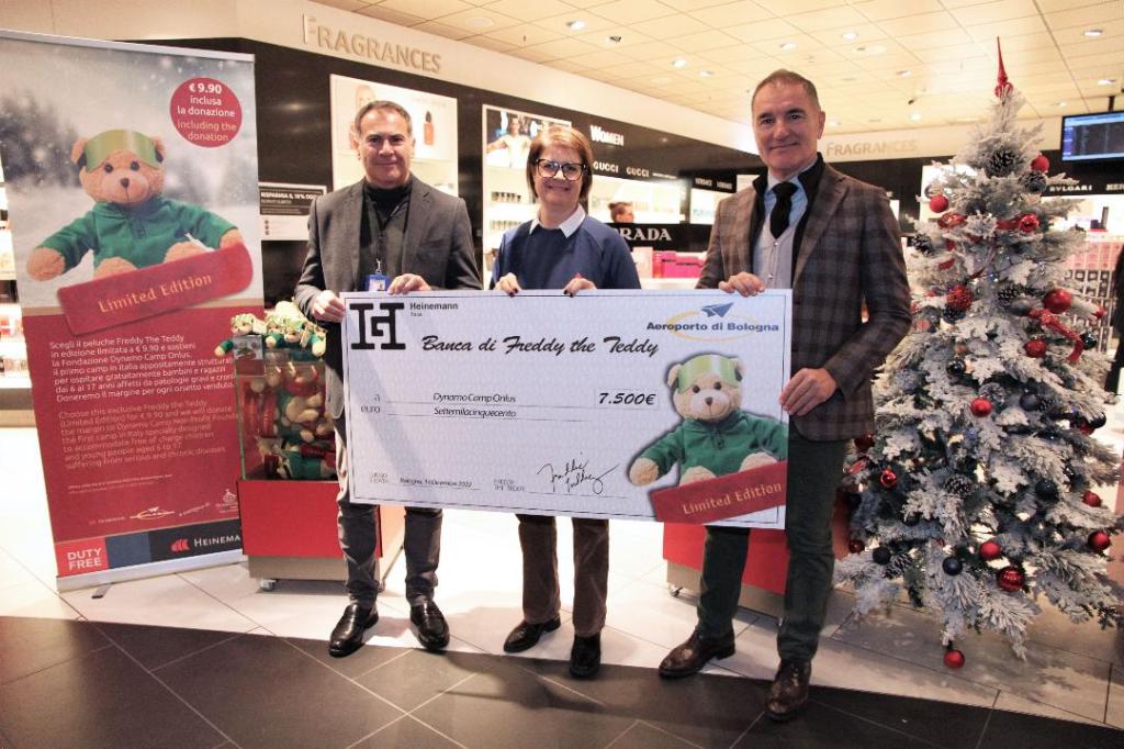 Si è conclusa ufficialmente con la cerimonia di consegna svoltasi all’interno del Duty Free Heinemann nell’area Schengen dell’Aeroporto di Bologna, <Freddy the Teddy= l’attività benefica di raccolta fondi a favore di Dynamo Camp, il primo camp di Terapia Ricreativa in Italia appositamente strutturato per ospitare gratuitamente bambini e ragazzi dai 6 ai 17 anni affetti da patologie gravi e croniche, iniziativa organizzata da Heinemann Italia, sussidiaria di Gebr. Heinemann con sede ad Amburgo, e supportata da Aeroporto di Bologna.