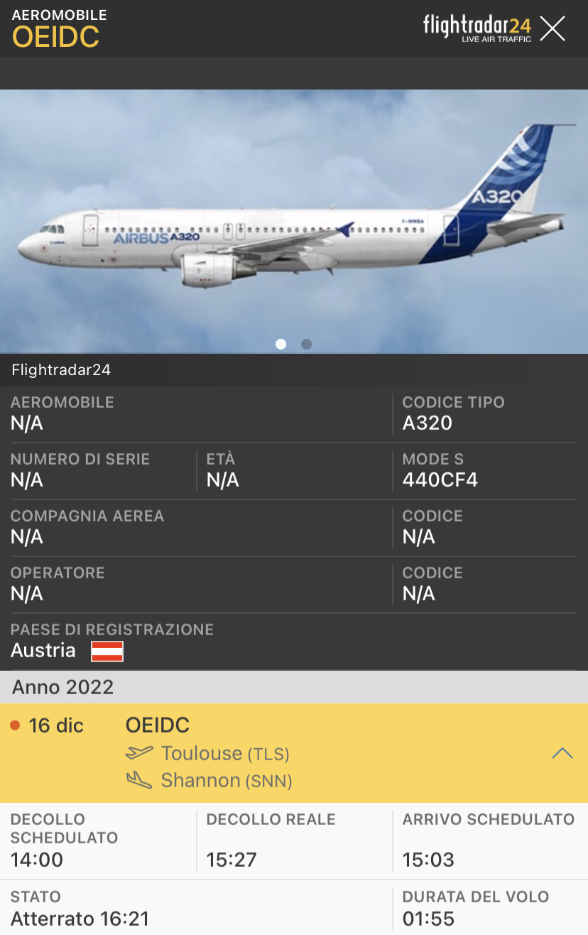 Ieri pomeriggio un A320-271N con marche OE-IDC e’ stato trasferito da Tolosa a Shannon per attività di verniciatura. Il sito tedesco Skyliner-aviation.de lo riporta per ITA Airways, l’aereo e’ di proprietà di Avolon.