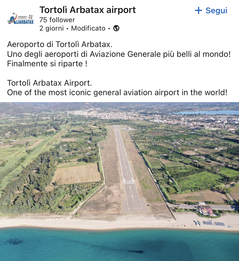 E’ incoraggiante leggere su LinkedIn che c’è’ l’intenzione di ripartire per l’aeroporto sardo dell’Ogliastra, quello di Tortoli – Arbatax.