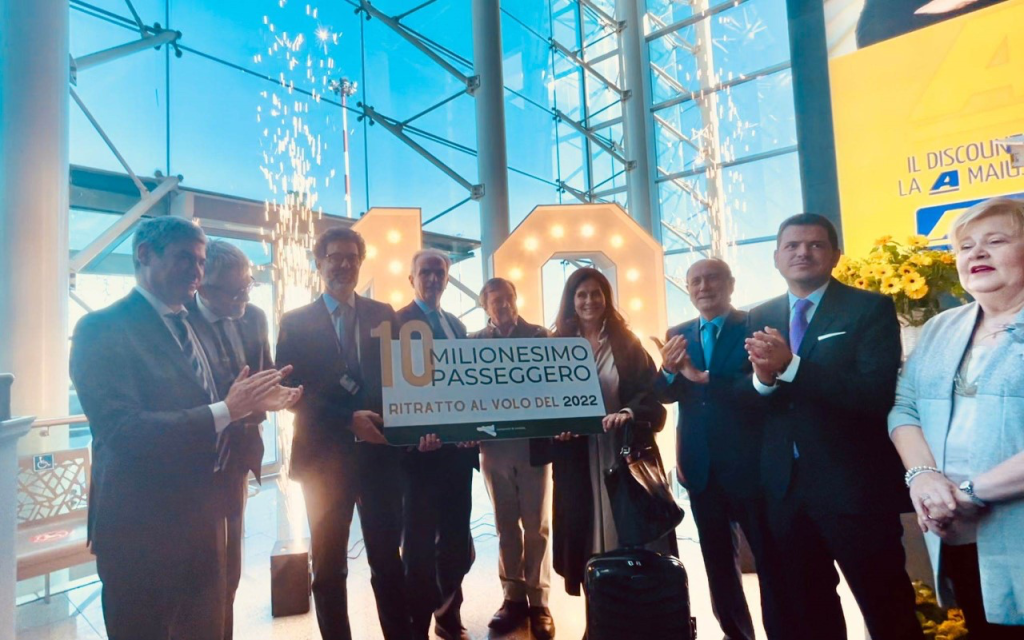 SAC comunica che oggi, mercoledì 28 dicembre, l’Aeroporto di Catania ha superato i dieci milioni di passeggeri transitati nello scalo durante il 2022, eguagliando in questo modo il dato del 2019, ultimo anno di normalità prima dell’emergenza Covid. Il risultato, importantissimo, è stato festeggiato con un evento emozionante, che ha riunito nello scalo catanese i vertici dell’aviazione commerciale italiana e della politica siciliana, insieme ai passeggeri, alle compagnie aeree, agli operatori aeroportuali, agli enti di Stato e al management della SAC.