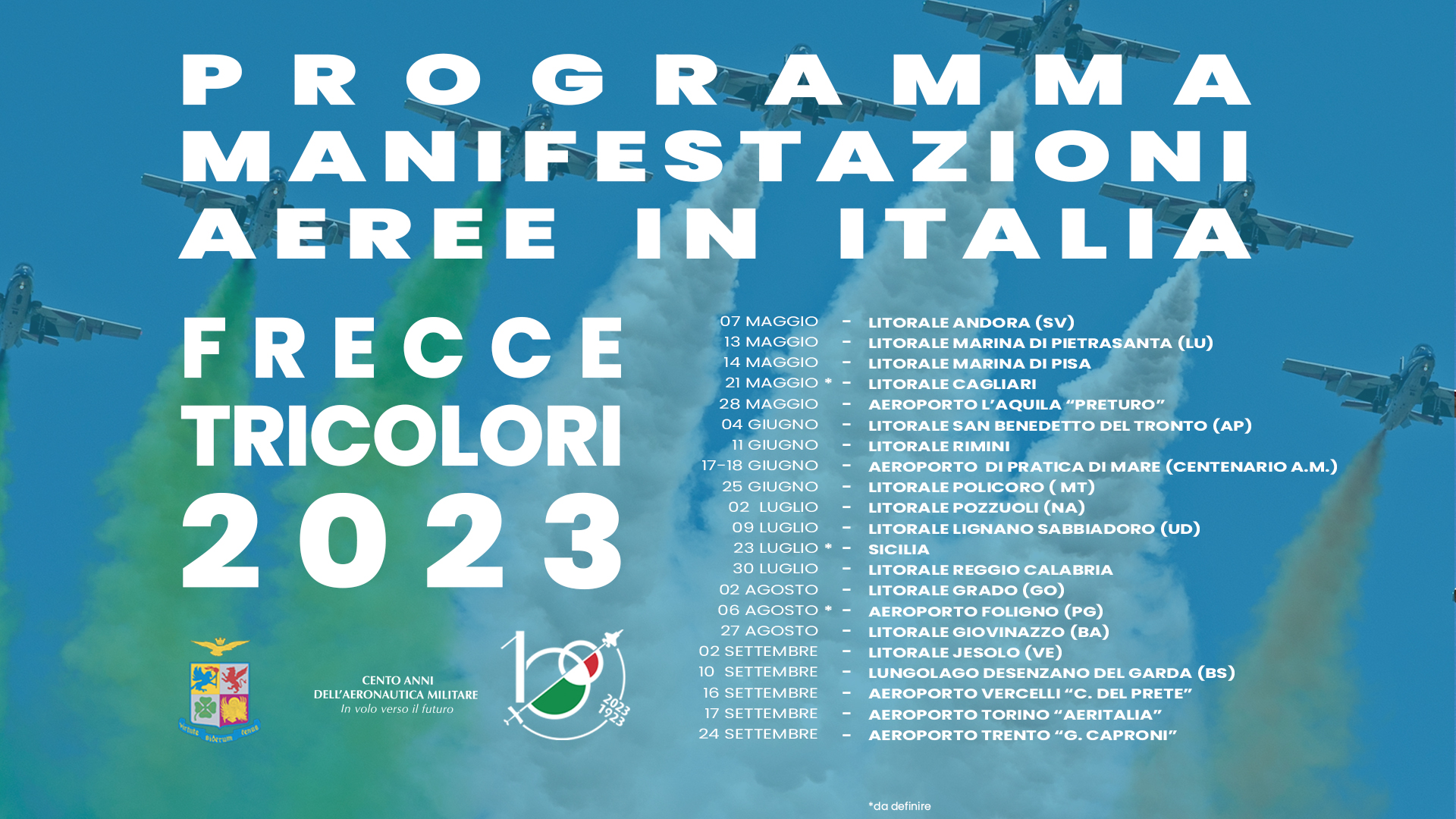 E’ uscito il Calendario 2023 delle attività delle Frecce Tricolori in Italia.