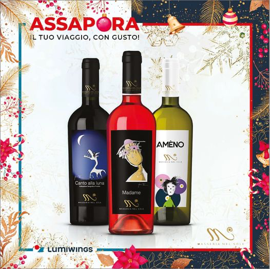 La compagnia greca Lumiwings che opera da Foggia i voli non stop per Milano Malpensa e Torino, d quì al 6 gennaio a bordo dei suoi aerei avrà i vini della Masseria del Sole di Lucera.