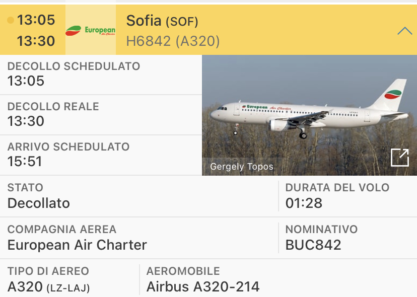 Oggi e’ il 2 gennaio e c’è’ stato il ritorno a Palermo del charter della compagnia aerea bulgara European Air Charter da e per Sofia.