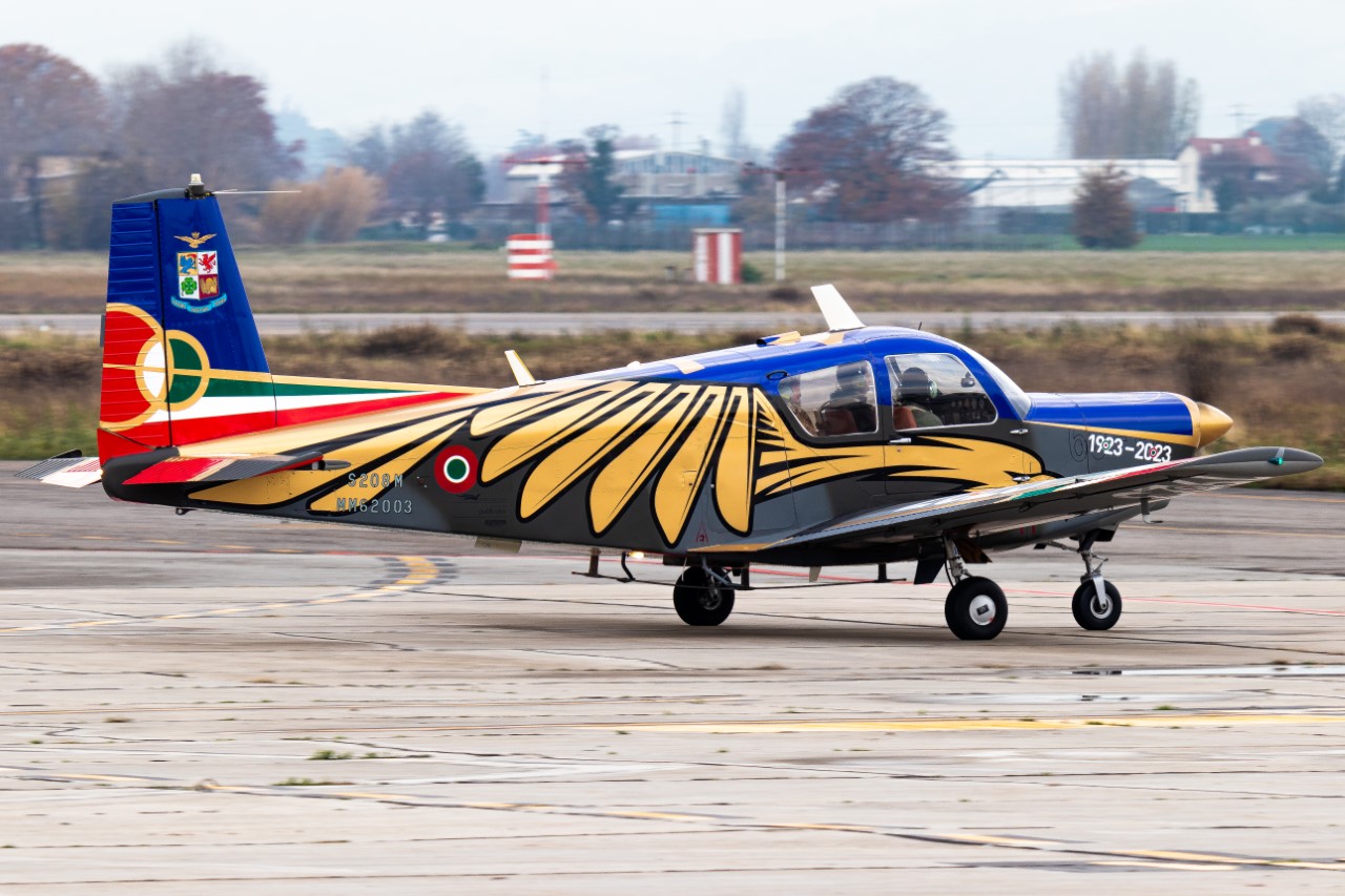 A Forlì presso Albatechnics è stato lavorato questo SIAI 208 AM che sfoggia una livrea commemorativa per i #100anni della Forza Armata