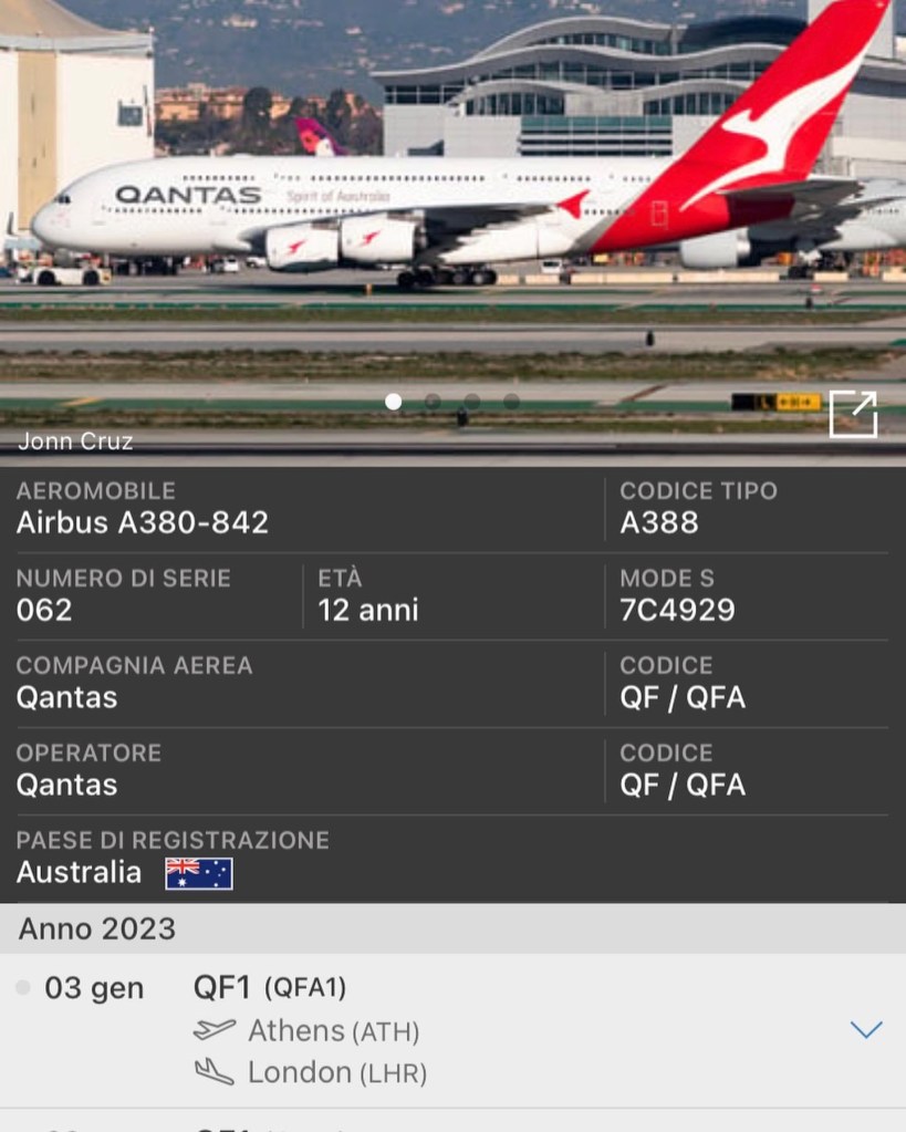 Questa mattina alle 6:50 del mattino, le 4:50UTC la QF1 il Singapore – Londra e’ atterrato fuori programma a Atene.