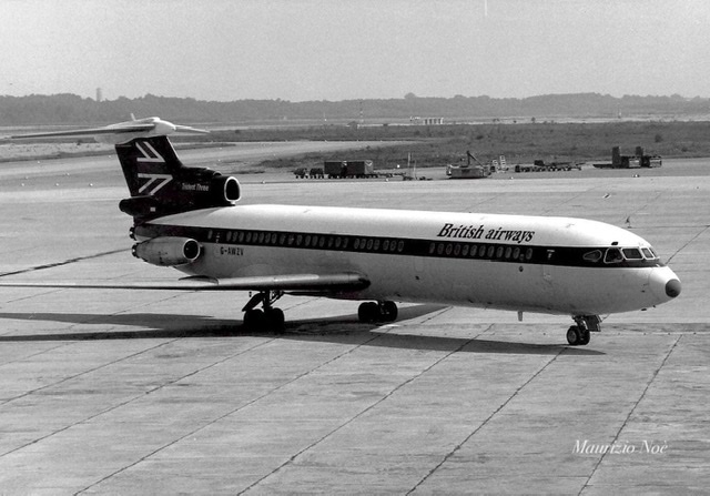 Il primo trigetto dell’aviazione commerciale mondiale fu questo. E’ l’Hawker Siddeley HS.121 Trident. Fu il 9 gennaio 1962, giusto un anno e un mese prima del ben più noto “ferro da stiro” e cioè il Boeing 727. In origine il progetto era DH.121 perché era nato in De Havilland, ma successivamente fu assorbita da Hawker Siddeley prima del primo volo e il progetto cambio’ designazione.