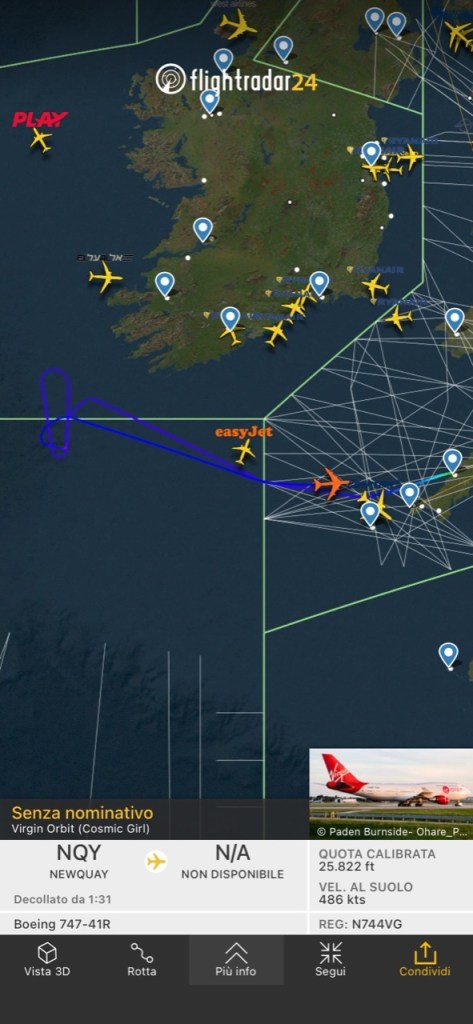 E’ decollata ieri sera da Newquay alle 22:02 locali del Regno Unito, alle 23:02 la missione di Cosmic Girl , il Boeing 747-41R N744VG.