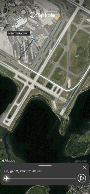 L’aereo italiano e’ partito dal JFK come AZ8007 il 11/1/2023, il decollo e’ avvenuto alle 20:45 ed e’ atterrato alle 8:19.