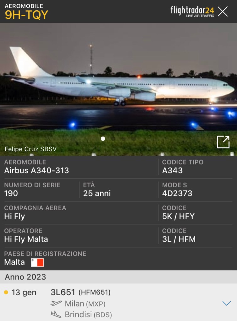 A Brindisi oggi c’è’ un ospite di eccezione, un A340-300 HiFly.