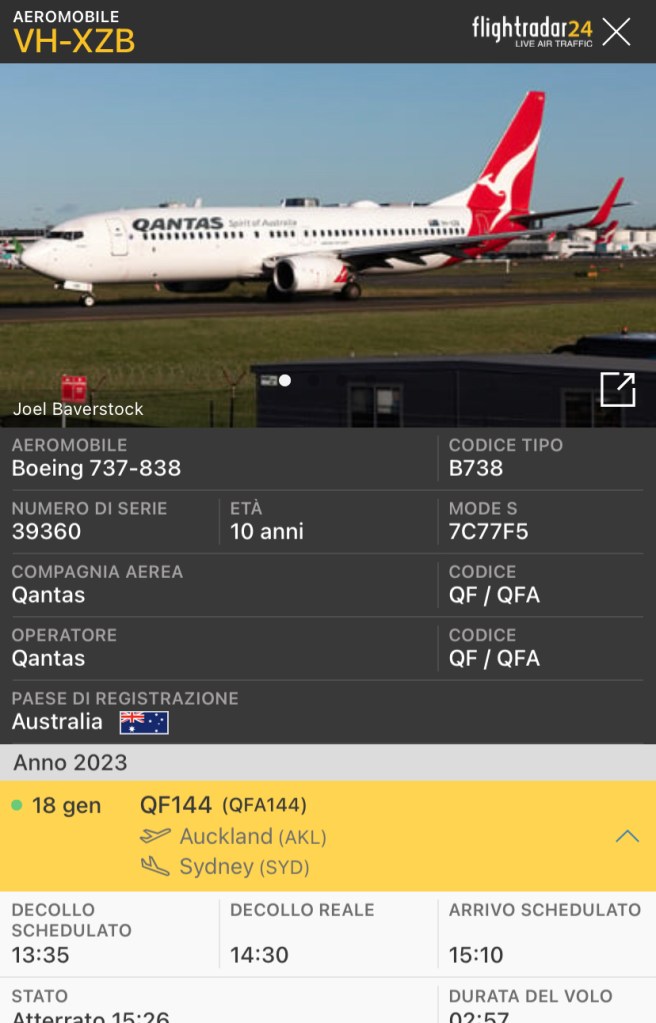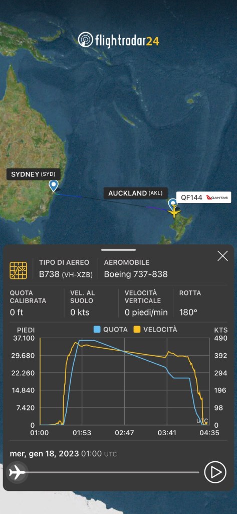 “Il volo Qantas 144, un B737in volo da Auckland a Sydney, ha avuto un problema con uno dei suoi motori a circa un’ora dalla sua destinazione.”