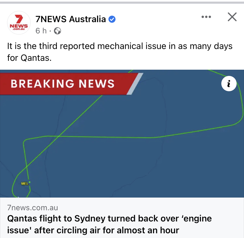 In precedenza un volo Sydney – Nandi (Fiji) rientrato dopo due ore dal decollo, in questo caso la ragione addotta , una potenziale problematica tecnica per il volo QF101, il quale ha circuitato per due ore di fronte alla costa del New South Wales.