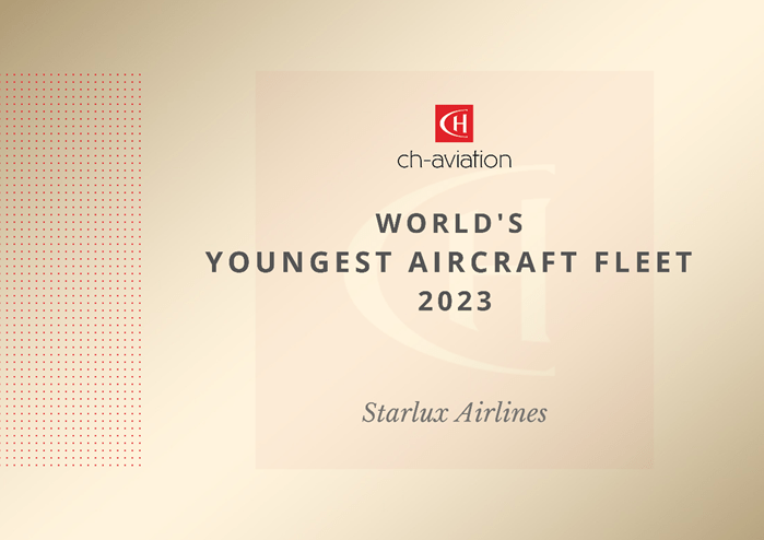 La compagnia aerea taiwanese Starlux Airlines gestisce la flotta di aeromobili più giovane del mondo e dell’Asia nel 2023. Vantando un’età media degli aeromobili di soli 1,22 anni, è stata nominata vincitrice del “ch-aviation World’s Youngest Aircraft Fleet Award 2023”.