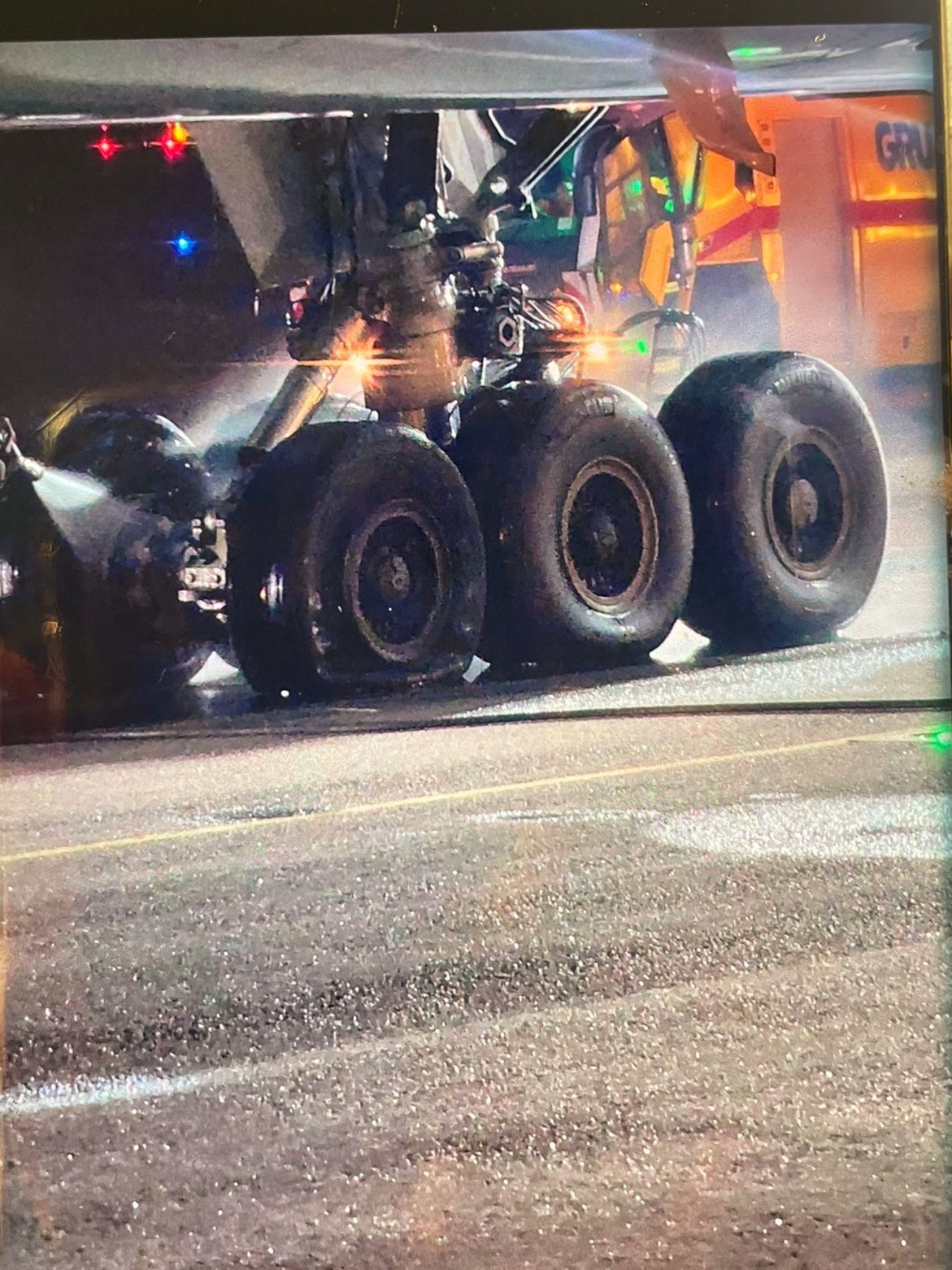 Dopo l’atterraggio alcuni pneumatici si sono afflosciati ed e’ stato necessario l’intervento dei vigili del fuoco.
