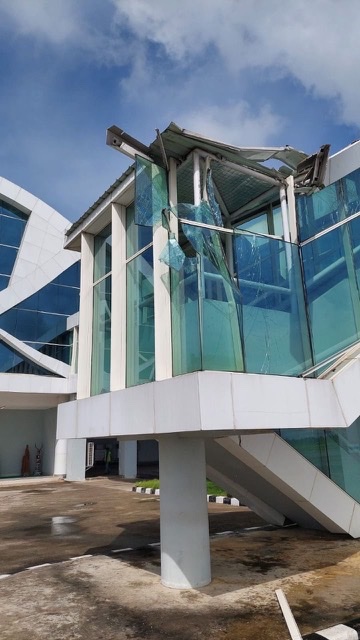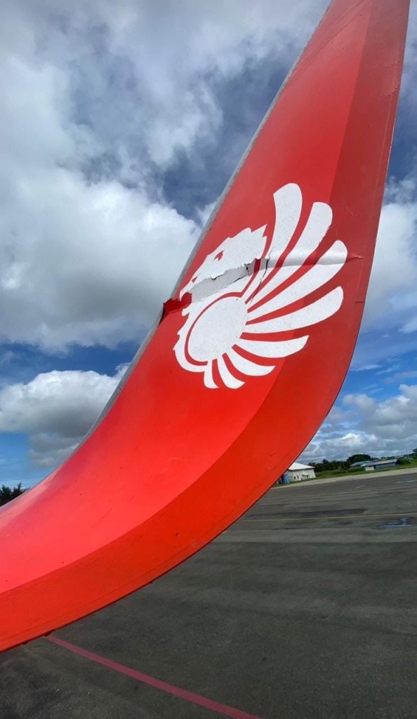 Nella prima foto ci sono i danno alla winglet e in quella sopra invece i danni al terminal, non di poco conto. Il danno all’aereo e’ riparabile, il volo JT797 e’ stato cancellato e i passeggeri non hanno subito conseguenze dirette.