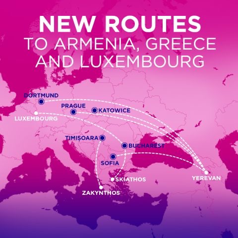 Quattro rotte sono da Yerevan per Praga, Katowice, Dortmund e Sofia.