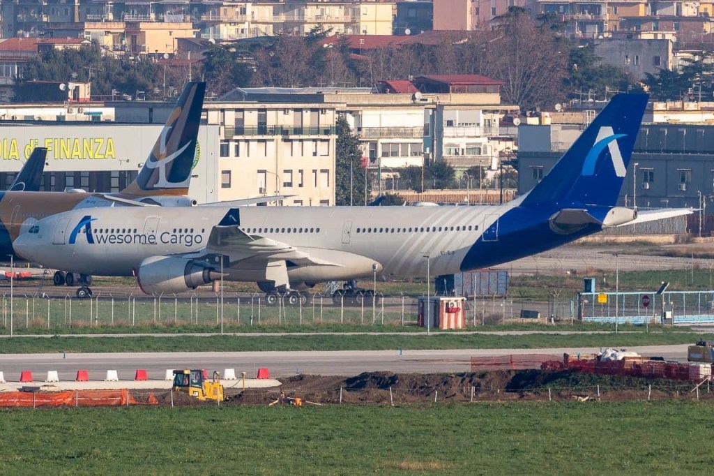 Nella foto di Giorgio Adamo c’è’ l’Airbus 330-202 EI-EJI della compagnia aerea messicana Awesome Cargo.