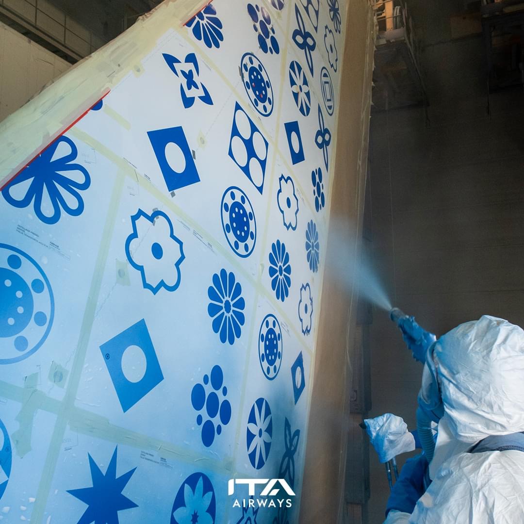 E’ un lavoro certosino quello che stanno compiendo i tecnici Airbus nella verniciatura del primo Airbus 330neo destinato a breve alla flotta di ITA Airways.