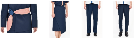 Le variazioni nelle uniformi consentono agli assistenti di cabina la flessibilità di vestirsi nel loro modo unico. Ci saranno due tipi di pantaloni, gonne e pantaloni, e una scelta di scarpe da ginnastica e scarpe in pelle.