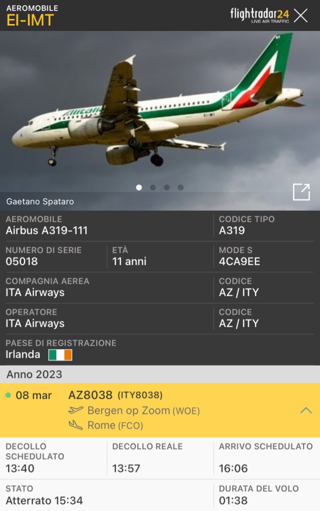 Ieri è avvenuto il trasferimento dell’aereo come AZ8038.
