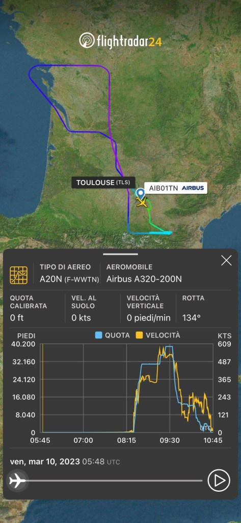 Nella giornata di ieri alle 8:27 e’ decollato da per la prima volta da Tolosa il quarto Airbus 320neo che prossimamente sarà consegnato alla ITA Airways.