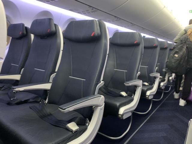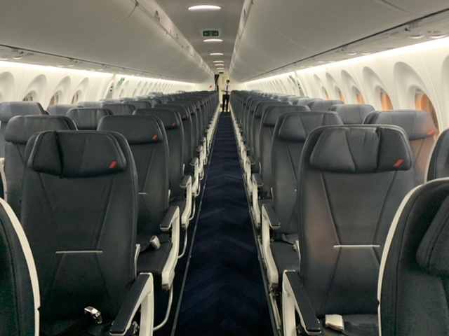A questo si aggiunge il fatto della configurazione interna che vede 5 posti per fila anziché sei. Tre posti a destra e due a sinistra. Ideale anche per intimità per chi viaggia in coppia. Cioè che l’80% di chi vola ha la facoltà di optare per il posto lato corridoio oppure al finestrino. Quest’ultimo il più grande disponibile di un aereo a fusoliera stretta. Un vero affaccio sul cielo, un impressione fortemente positiva che aumenta il piacere di volare.