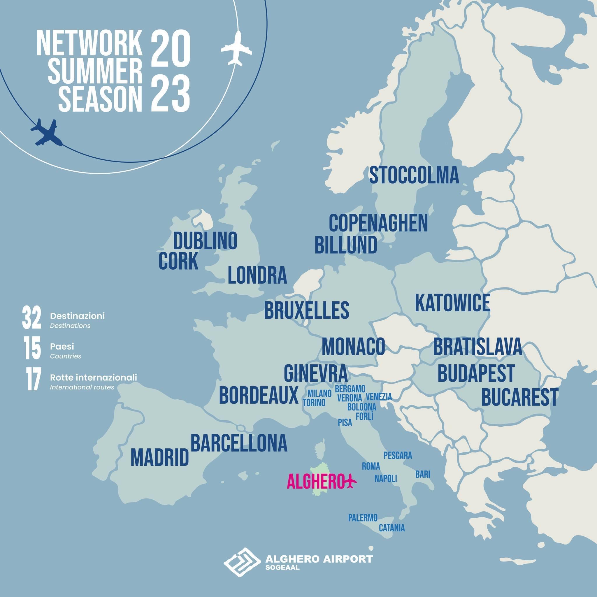32 destinazioni in 15 paesi! Questa sarà l’offerta estiva per lo scalo sardo di Alghero.