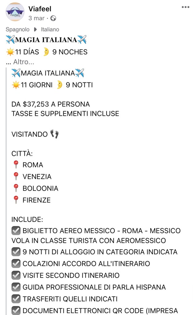 Non solo business, ma anche turismo. Un esempio e’ il pacchetto di Viafeel che organizza un tour di full immersion in Italia che tocca dopo Roma anche Venezia, Bologna e Firenze