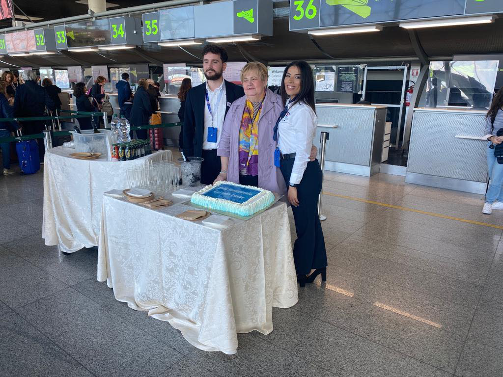 Il volo inaugurale è stato inoltre celebrato con un brindisi e taglio di torta alla presenza della presidente di SAC Società Aeroporto Catania, Giovanna Candura.