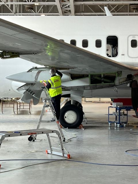 In un paio di post su LinkedIn , Albatechnics descrive le attività in corso su un Boeing 737/400. Chiaramente lo si vede dalle immagini il tipo di aereo.