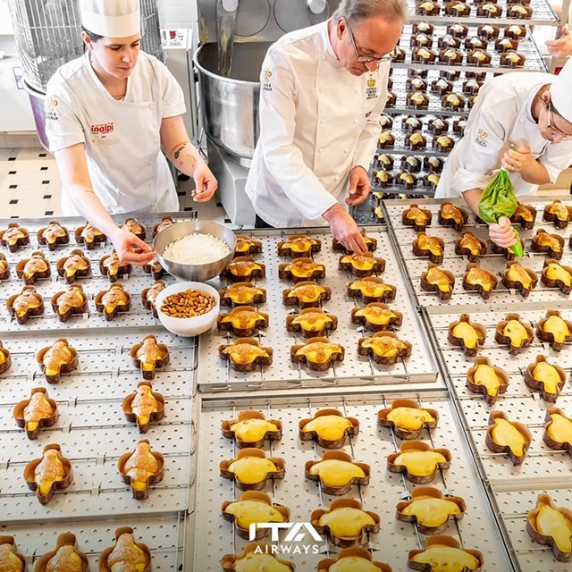 Nei giorni scorsi lo chef Gian Piero Vivalda di #AnticaCoronaReale e’ stato ripreso mentre era al lavoro per preparare le sue colombe artigianali di Pasqua per i passeggeri che voleranno in Business Class sui voli a lungo raggio ITA Airways.