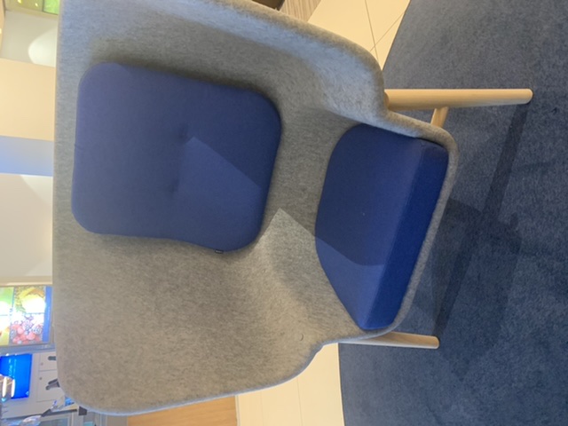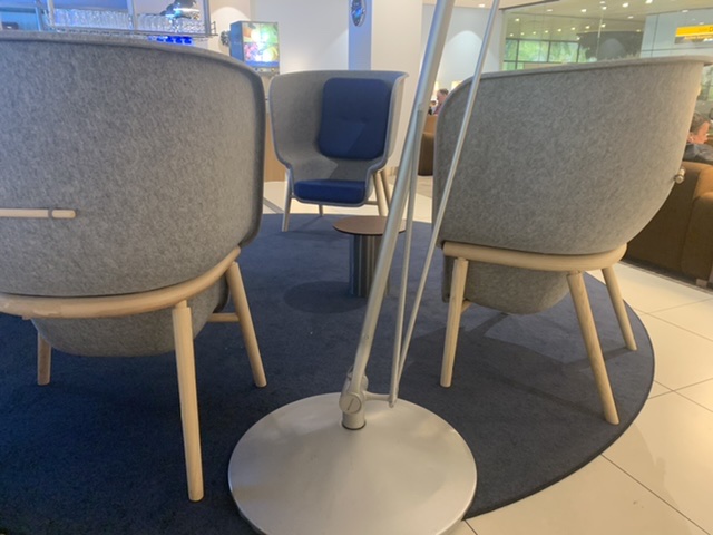 Nella sobrietà olandese all’interno della Crown Lounge KLM nell’area Schenghen prima del molo D al mezzanino sono comparse queste nuove poltrone grigio azzurre bei colori della compagnia aerea olandese.