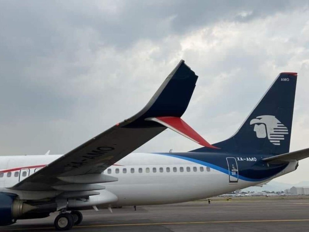 L’estremità alare sinistra di un Boeing 737/800 Aeromexico con la parte superiore di una split scimitar winglet e’ entrata in collisione vi. Lo stabilizzatore destro di un Boeing 757/200 Delta Air Lines.