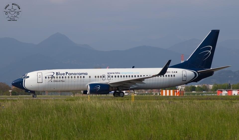 Nella foto di Kamal Hraoui, ha immortalato il momento della partenza da Bergamo per Praga del Boeing 737/800 9H-GAW nei colori Blue Panorama.