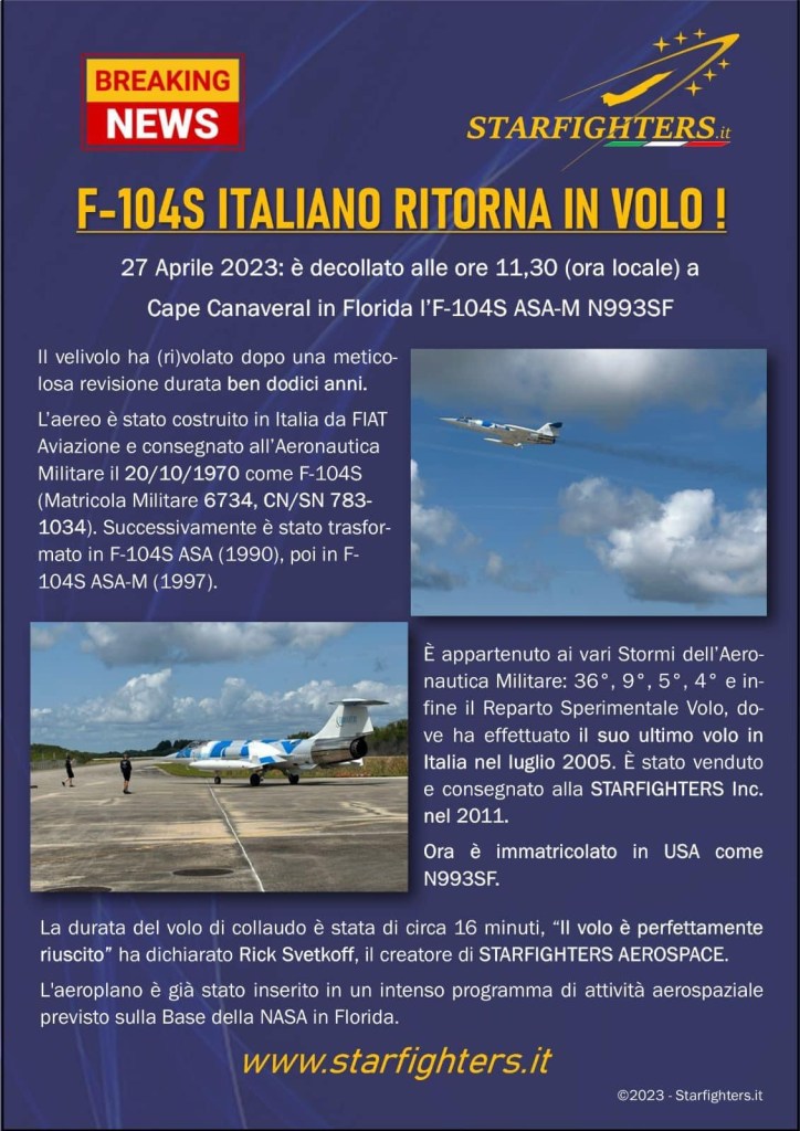 Ieri un F-104S e’ decollato dall’aeroporto di Cape Canaveral. Lo si apprende da Starfighters.it
