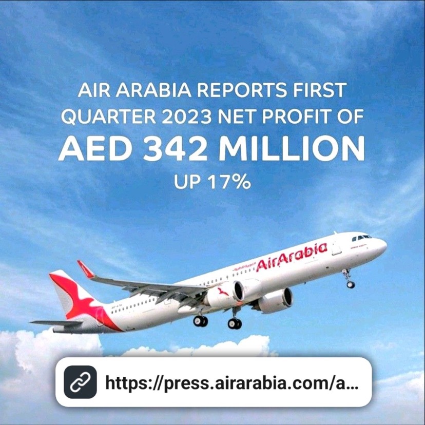 Nove rotte aperte e 1,42 miliardi di AED fatturati al più 27% e utili per 342 milioni di AED +17%, questi i risultati profitto nel primo trimestre da Air Arabia.