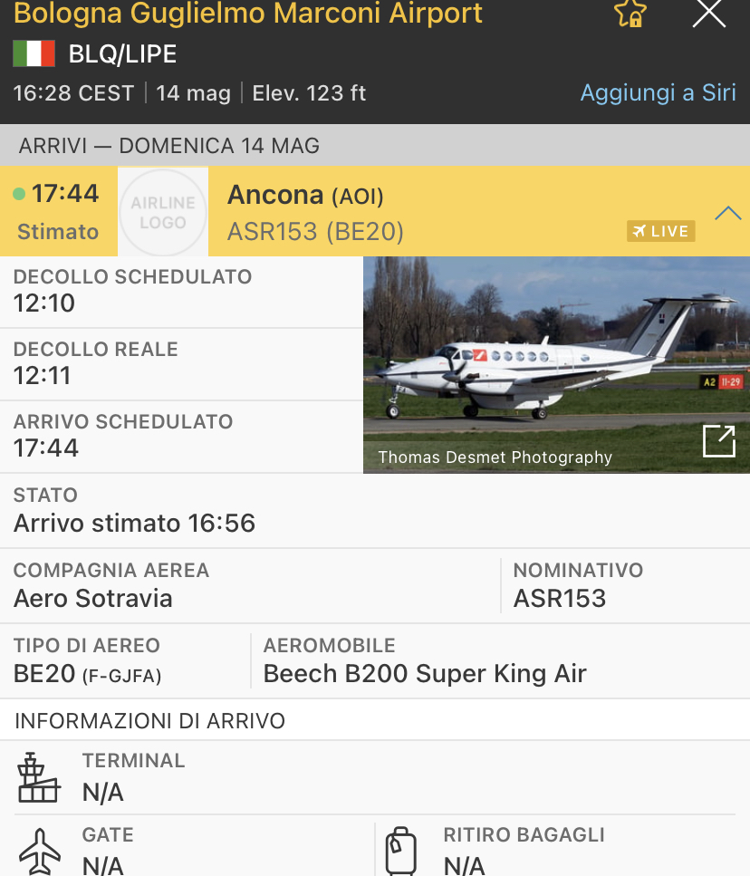 Il 10 maggio da Foggia a Napoli con 6 ore e 23 minuti di volo.
